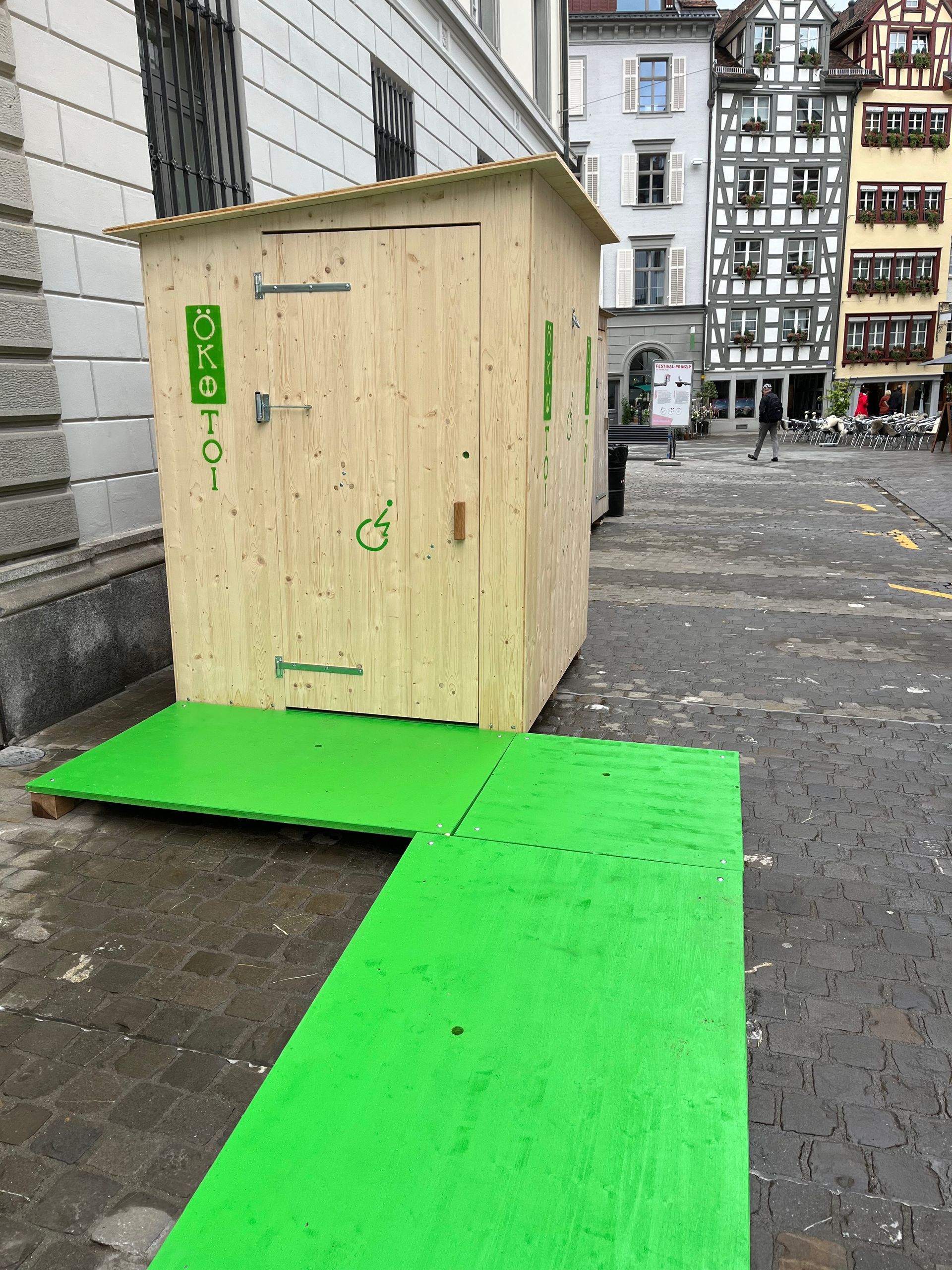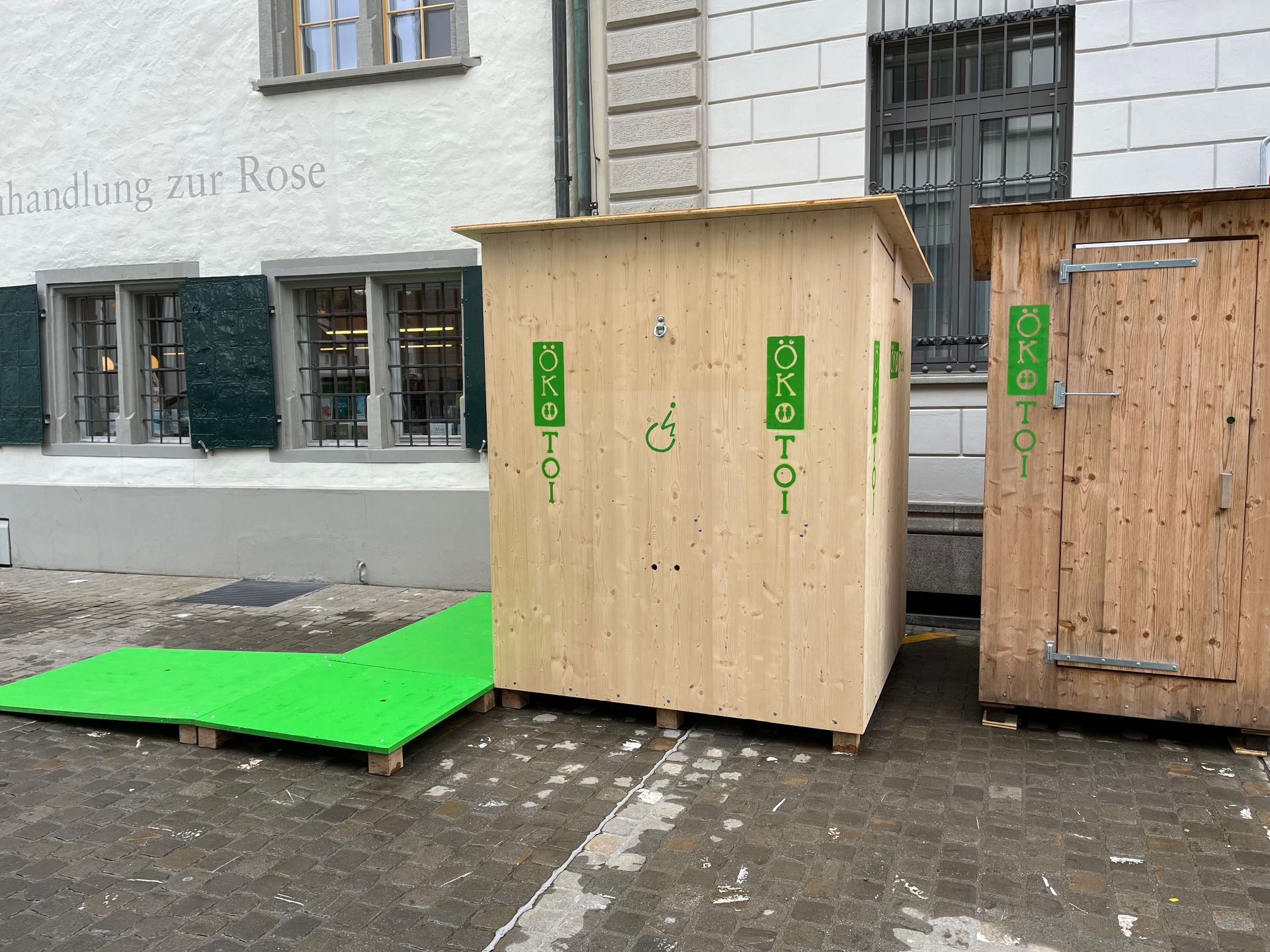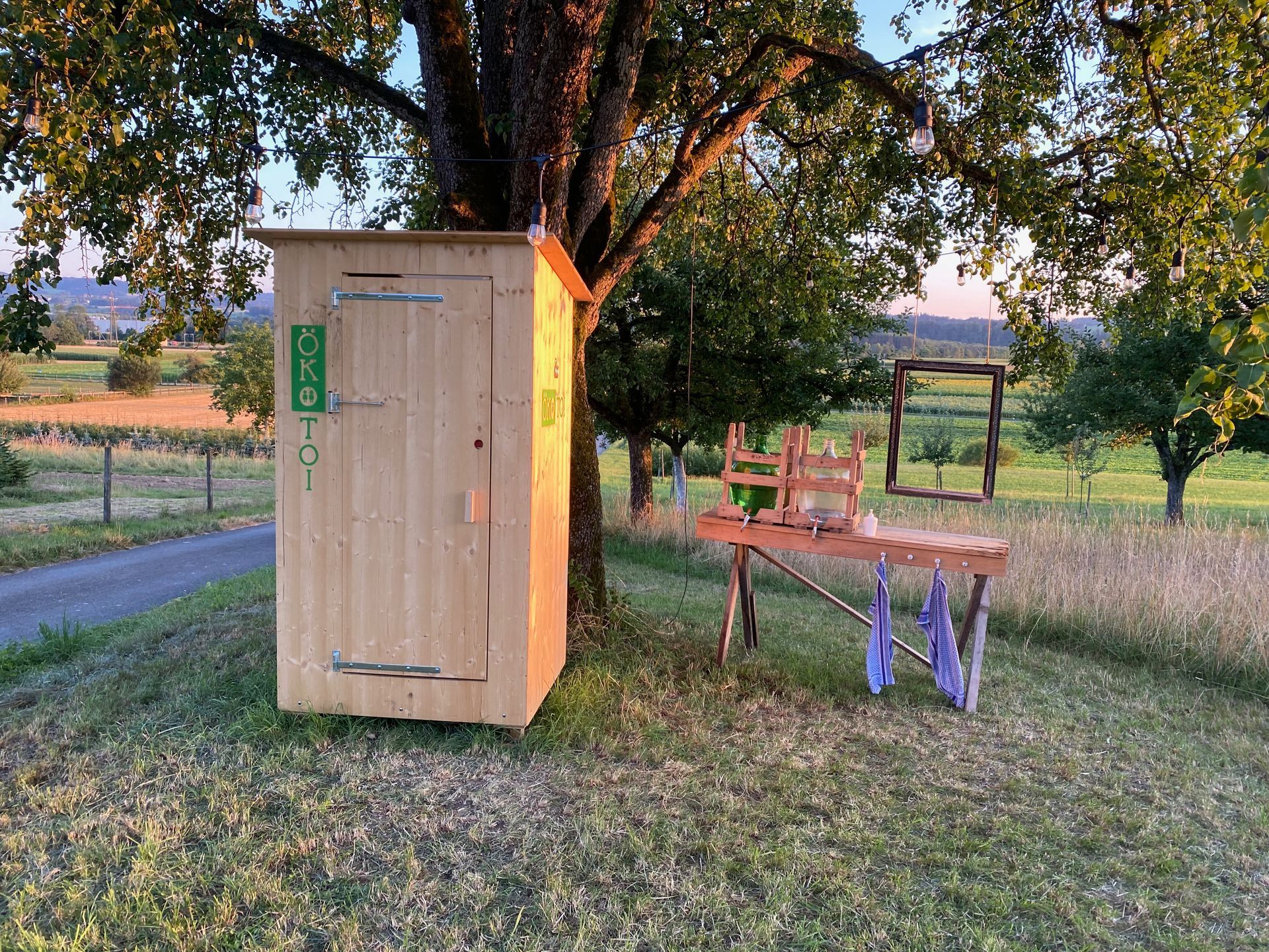 Unsere Ökotoi's sind ausgestattet mit einer Toilette wie man sie von Zuhause kennt, einem Hygiene-Eimer, einem Desinfektionsmittelspender und einer Solarbetriebene LED- Leuchte mit Bewegungssensor, die auch Nachts den Durchblick gewährt.
